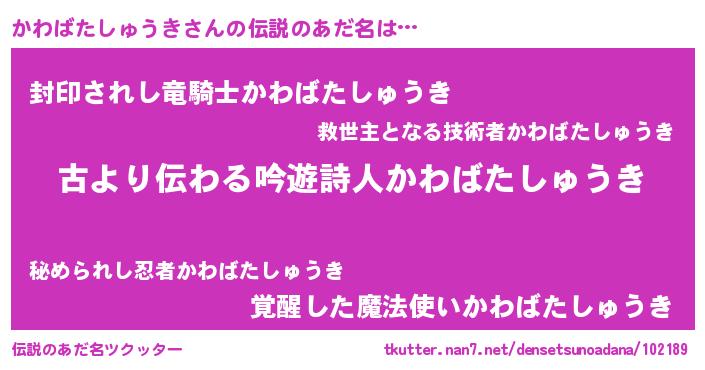 | 意味不明あだ名 | 『永久保存かわばたしゅうき』 |