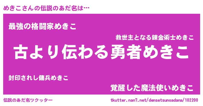 | 女子向けラノベタイトル風あだ名 | 『めきこアンティーク』 |