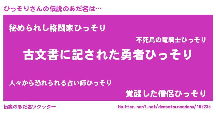 | 男性向けラノベタイトル風あだ名 | 『ひっそりに滅ぼされるだけの簡単なお仕事です』 |