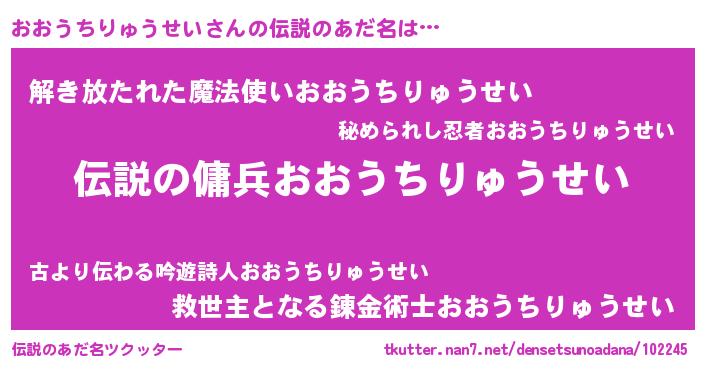 | 女子向けラノベタイトル風あだ名 | 『(仮)おおうちりゅうせいのやんごとなき事情』 |