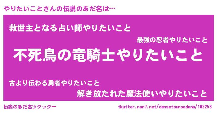 | ヒーロー風カッコイイあだ名 | 『スーパーヤリタイコト』『仮面ヤリダー』 |