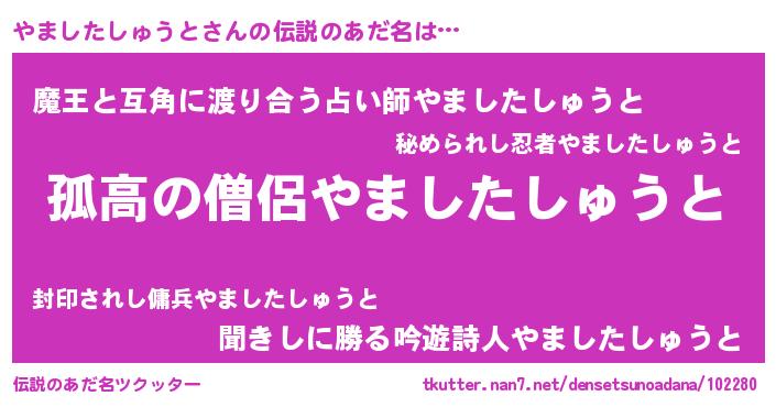 | 男性向けラノベタイトル風あだ名 | 『ダンジョンにやましたしゅうとを求めるのは間違っているだろうか』 |