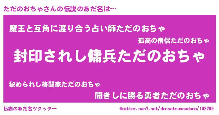 | 男性向けラノベタイトル風あだ名 | 『Re:ただのおちゃから始める異世界生活』 |