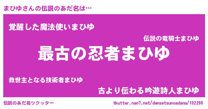 | 男性向けラノベタイトル風あだ名 | 『うちの娘の為ならば、俺はもしかしたらまひゆも倒せるかもしれない。』 |