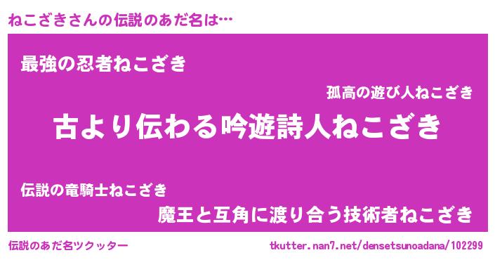 | 男性向けラノベタイトル風あだ名 | 『ねこざきという概念が存在しない退屈な世界 』 |