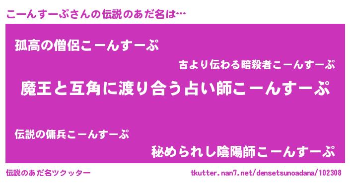 | 女子向けラノベタイトル風あだ名 | 『こーんすーぷ恋絵巻』 |