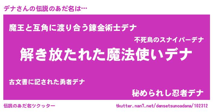 | 男性向けラノベタイトル風あだ名 | 『デナの嫁は女の子じゃないと思った?』 |
