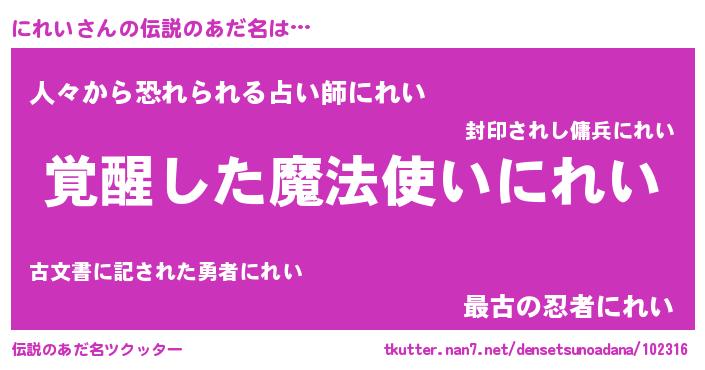 | ヒーロー風カッコイイあだ名 | 『仮面ニレダー』『銀牙騎士ニレ』 |