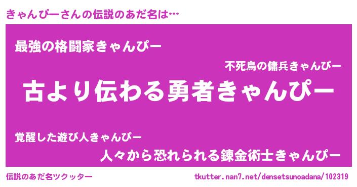| 意味不明あだ名 | 『永久保存きゃんぴー』『自称きゃんぴー』 |