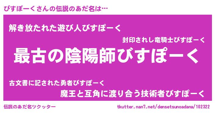 | 意味不明あだ名 | 『びすぽーくフォーエバー』 |