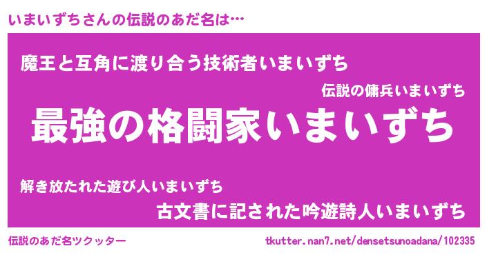| 男性向けラノベタイトル風あだ名 | 『いまいずちに滅ぼされるだけの簡単なお仕事です』 |