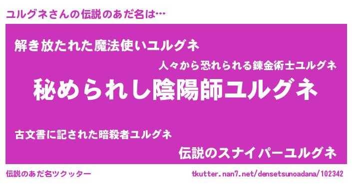 | ファンタジー風あだ名 | 『エターナルユルグネー』『ゼユルトゥ』 |