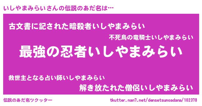 | 意味不明あだ名 | 『自称いしやまみらい』 |
