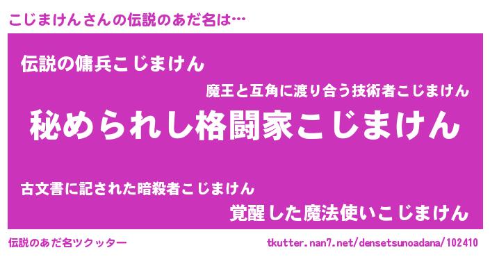 | ファンタジー風あだ名 | 『エターナルコジマケンー』『コジフェル』 |