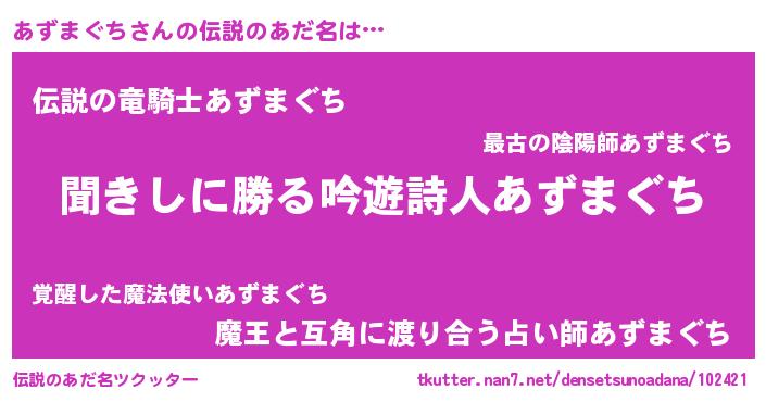 | 意味不明あだ名 | 『住所不定無職あずまぐち(5歳)』 |