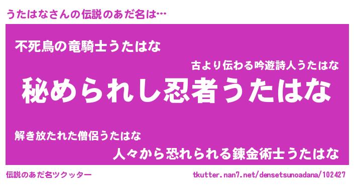 | ヒーロー風カッコイイあだ名 | 『ウルトラ戦士ウタハナ』『ネオウタハナ』 |