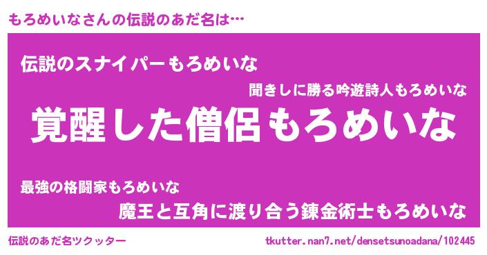 | 男性向けラノベタイトル風あだ名 | 『もろめいなの嫁は女の子じゃないと思った?』 |