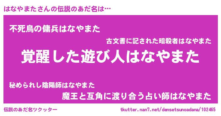 | 男性向けラノベタイトル風あだ名 | 『はなやまたの嫁は女の子じゃないと思った?』 |