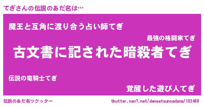 | ヒーロー風カッコイイあだ名 | 『ネオテギ』『愛の使者てぎ』 |