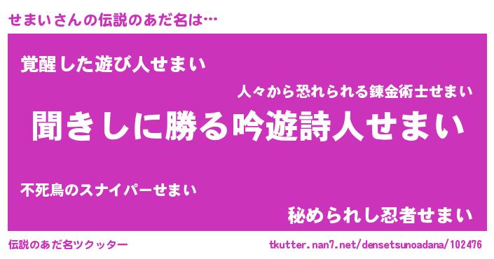 | 意味不明あだ名 | 『永久保存せまい』『自称せまい』 |