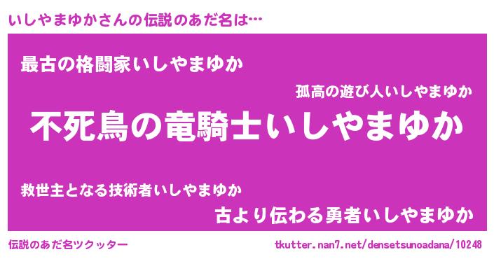 | ヒーロー風カッコイイあだ名 | 『スーパーイシヤマユカ』『仮面イシダー』 |