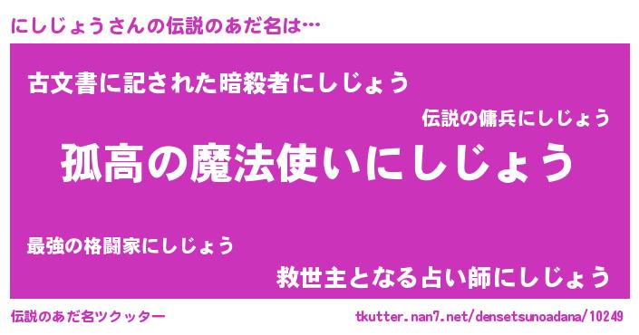 | 胡散臭い通販商品みたいなあだ名 | 『信頼と実績のサプリメント…その名も「にしじょう」』 |
