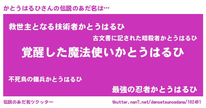| 意味不明あだ名 | 『自称かとうはるひ』 |