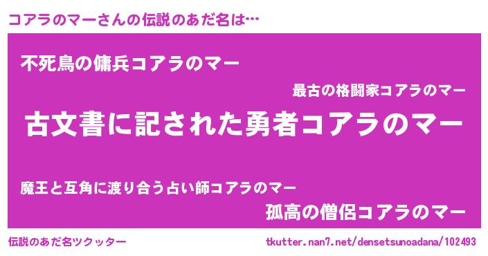 | ヘコむあだ名 | 『コアラのマー(震え声)』『コアにゅー』 |