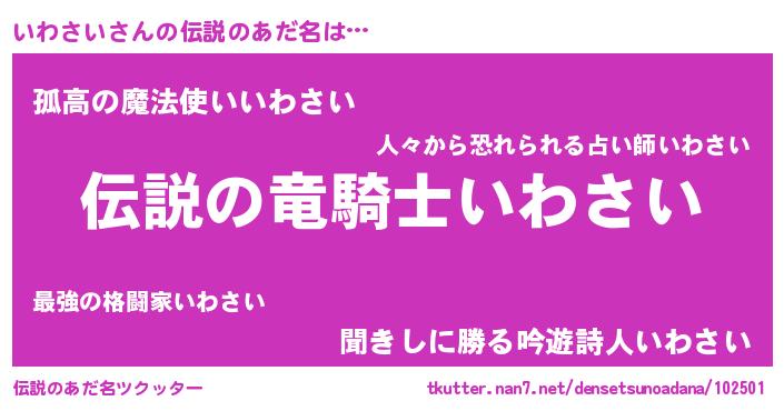 | 胡散臭い通販商品みたいなあだ名 | 『必ず成功するブレスレット…その名も「いわさい」』 |
