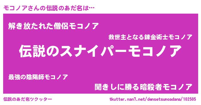 | ヒーロー風カッコイイあだ名 | 『スーパーモコノア』『幻影騎士モコ』 |