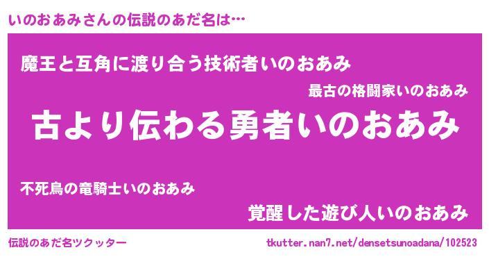 | 意味不明あだ名 | 『永久保存いのおあみ』 |