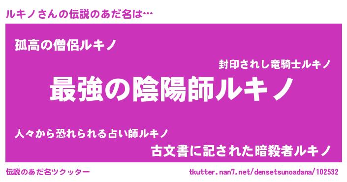 | ヒーロー風カッコイイあだ名 | 『究極戦士ルキノ』『ウルトラルキノマン』 |