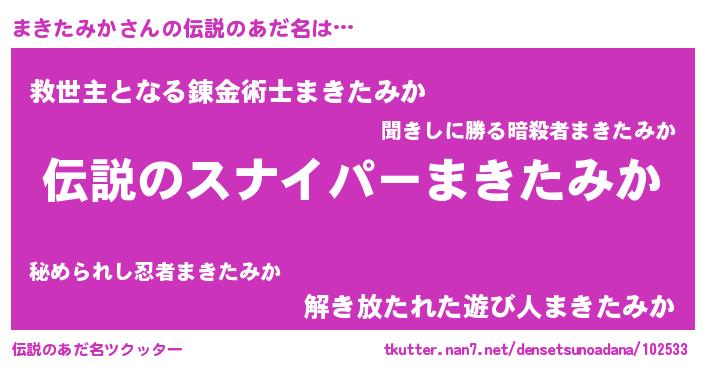 | 男性向けラノベタイトル風あだ名 | 『マキタミカスレイヤー』 |