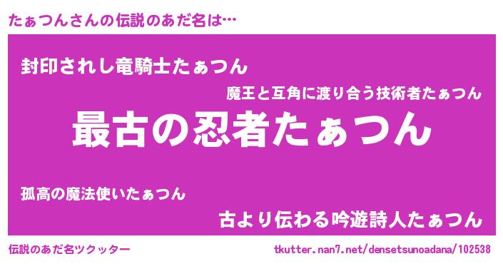 | ヒーロー風カッコイイあだ名 | 『ウルトラたぁつんマン』『ネオタァツン』 |