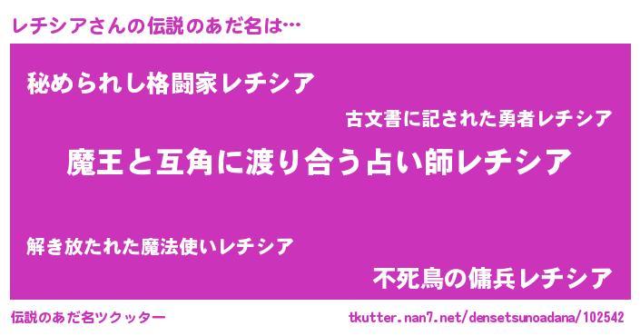 | ヒーロー風カッコイイあだ名 | 『愛の使者レチシア』『仮面レチダー』 |