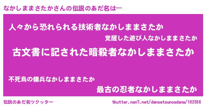 | 男性向けラノベタイトル風あだ名 | 『うちのなかしままさたかが世界を掌握している!』 |