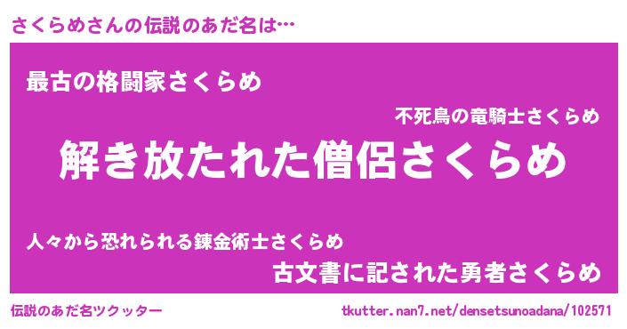 | 意味不明あだ名 | 『住所不定無職さくらめ(59歳)』 |