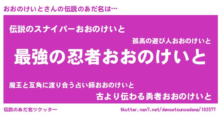| 意味不明あだ名 | 『おおのけいとフォーエバー』 |