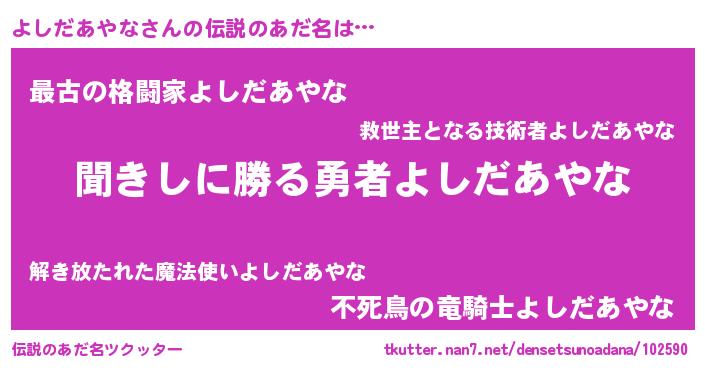 | ヒーロー風カッコイイあだ名 | 『ネオヨシダアヤナ』『仮面ヨシダー』 |