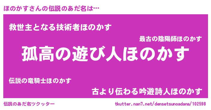 | 意味不明あだ名 | 『とにかく怪しいほのかす』 |