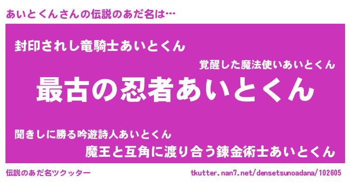 | 意味不明あだ名 | 『あいとくんフォーエバー』 |
