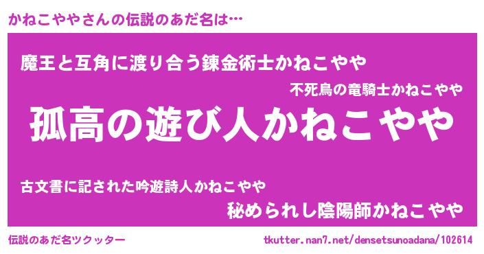 | ヒーロー風カッコイイあだ名 | 『暗黒騎士カネ』『愛の使者かねこやや』 |
