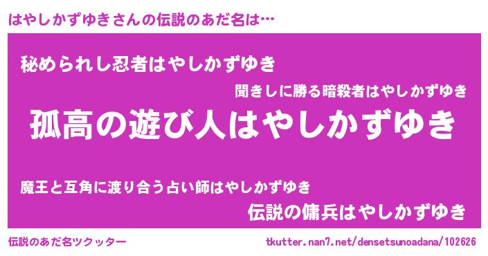 | ポケモン風あだ名 | 『ヒハヤシカズユキ』『ハヤゴンZ』 |