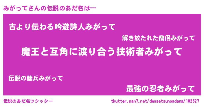 | ヘコむあだ名 | 『みがって(笑)』『つくし』 |
