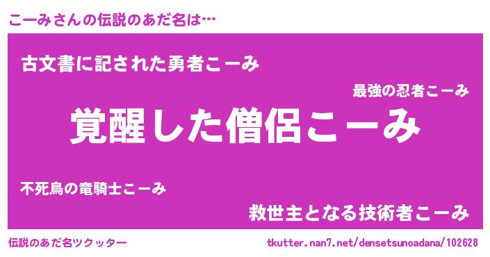 | 意味不明あだ名 | 『とにかく怪しいこーみ』 |