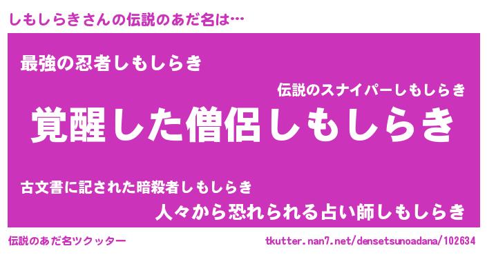 | 意味不明あだ名 | 『住所不定無職しもしらき(62歳)』 |