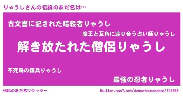 | ヒーロー風カッコイイあだ名 | 『幻影騎士リャ』『ネオリャウシ』 |