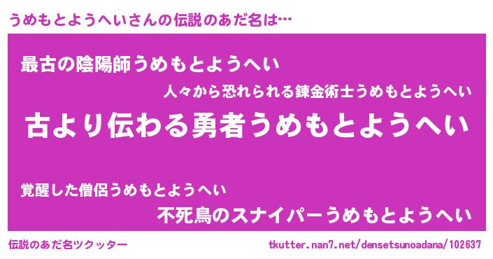 | 男性向けラノベタイトル風あだ名 | 『うめもとようへいという概念が存在しない退屈な世界 』 |