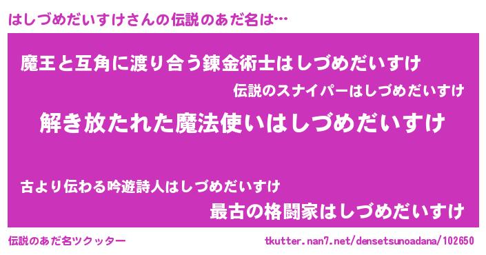 | 意味不明あだ名 | 『住所不定無職はしづめだいすけ(8歳)』 |