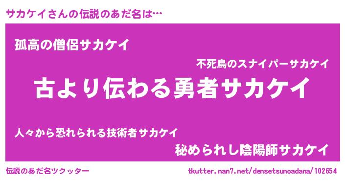 | ヒーロー風カッコイイあだ名 | 『ネオサカケイ』『魔戒騎士サカ』 |